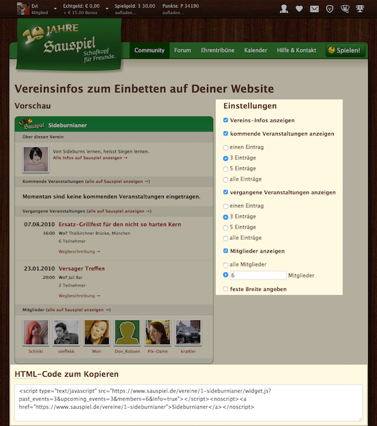 Darüber hinaus kann man die Vereinsheimmitgliedschaft (oder Sauspiel Tout in der App) aber schon für einen monatlichen Beitrag von 5€ bzw. 2€ mit Ermäßigung bekommen. Für Vereinsheimmitglieder bieten wir eine ganze Reihe von Extrafunktionen an. Hier findest Du weitere Informationen.